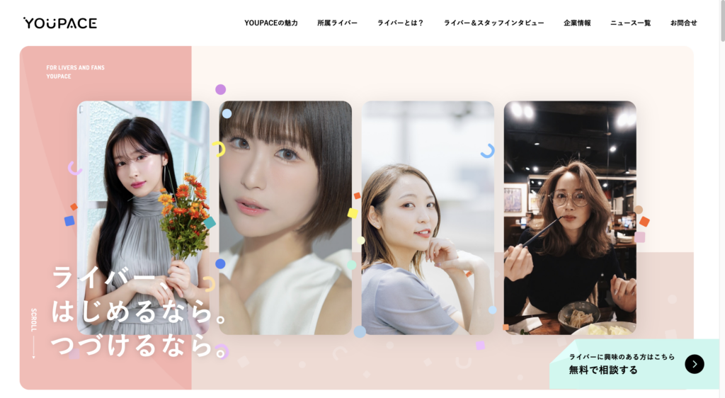 YOUPACE(旧PRIME)は、ライブ配信者(ライバー)の活動を支援するマネジメント事務所です。